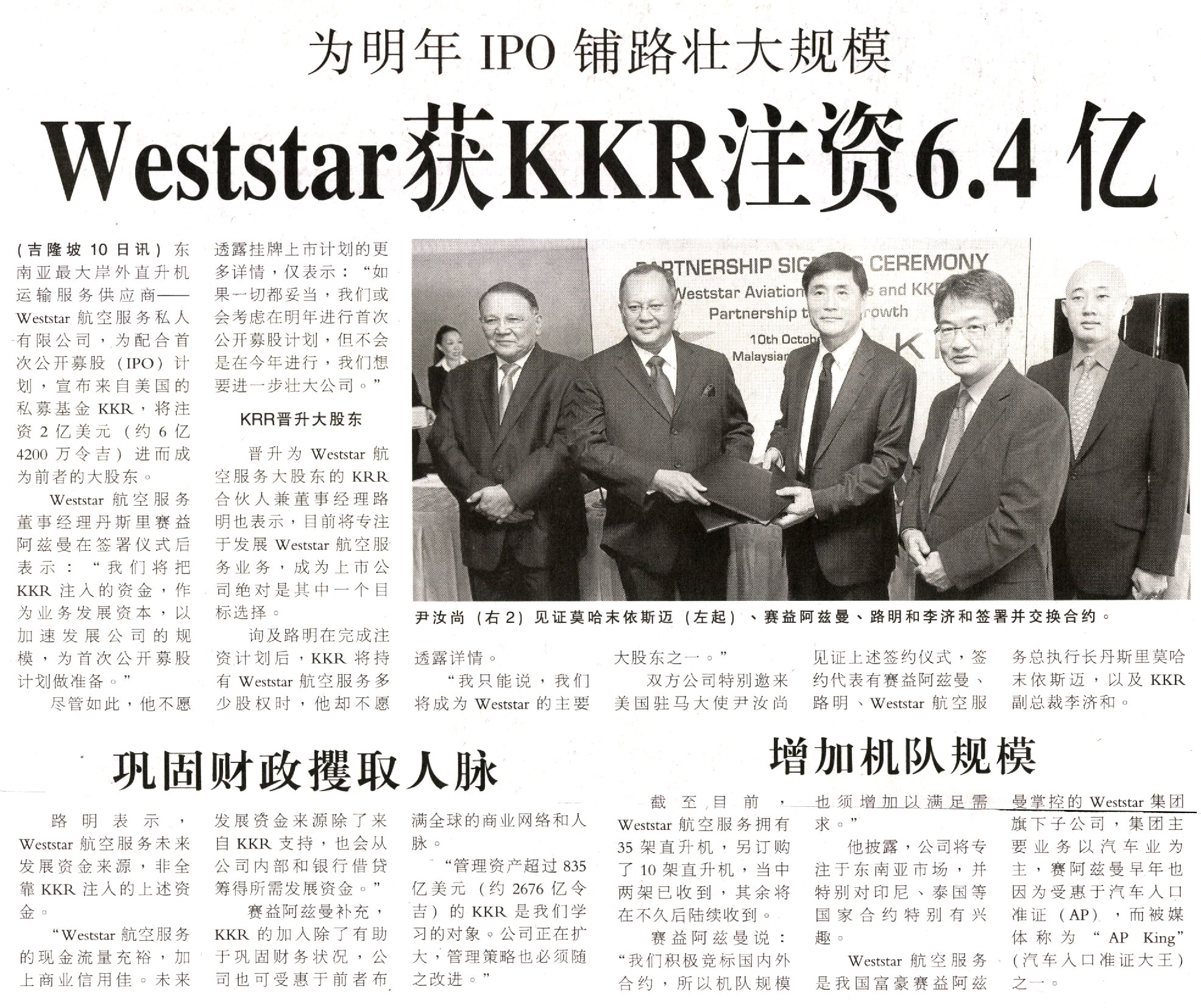KKR to buy stake in Malaysia's Weststar Aviation Services